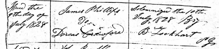 Dorcas was the daughter of Vineyard Crawford, one of the original settlers to the area. Interestingly, based on research I’ve done on the Vinyard/James Phillips connection, I’ve found that Vineyard was in the St Clair county area since 1815 when it was a part of Mississippi territory. William Phillips, and James Phillips for that matter, are NOT in the area by 1815.