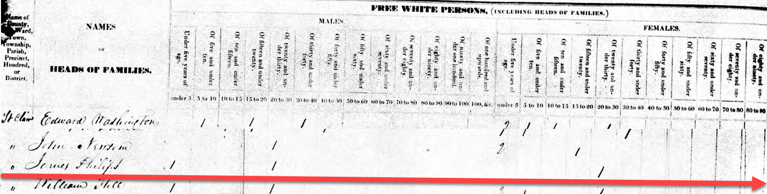 James leaves this land to go live with his dad William. At this point William is 75 and Sarah is 72, so they would likely need some help getting around. James and Dorcas are living with 7 kids, including one new addition Dorcas Phillips! James has $1,000 in real estate, so there should be an additional land purchase in Township 12, Range 4 East.