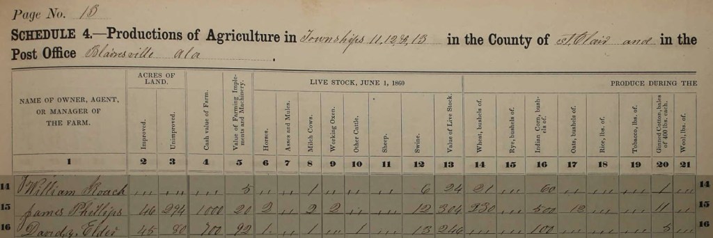 He’s also in the 1860 Ag census, notably William does not have land in this one.