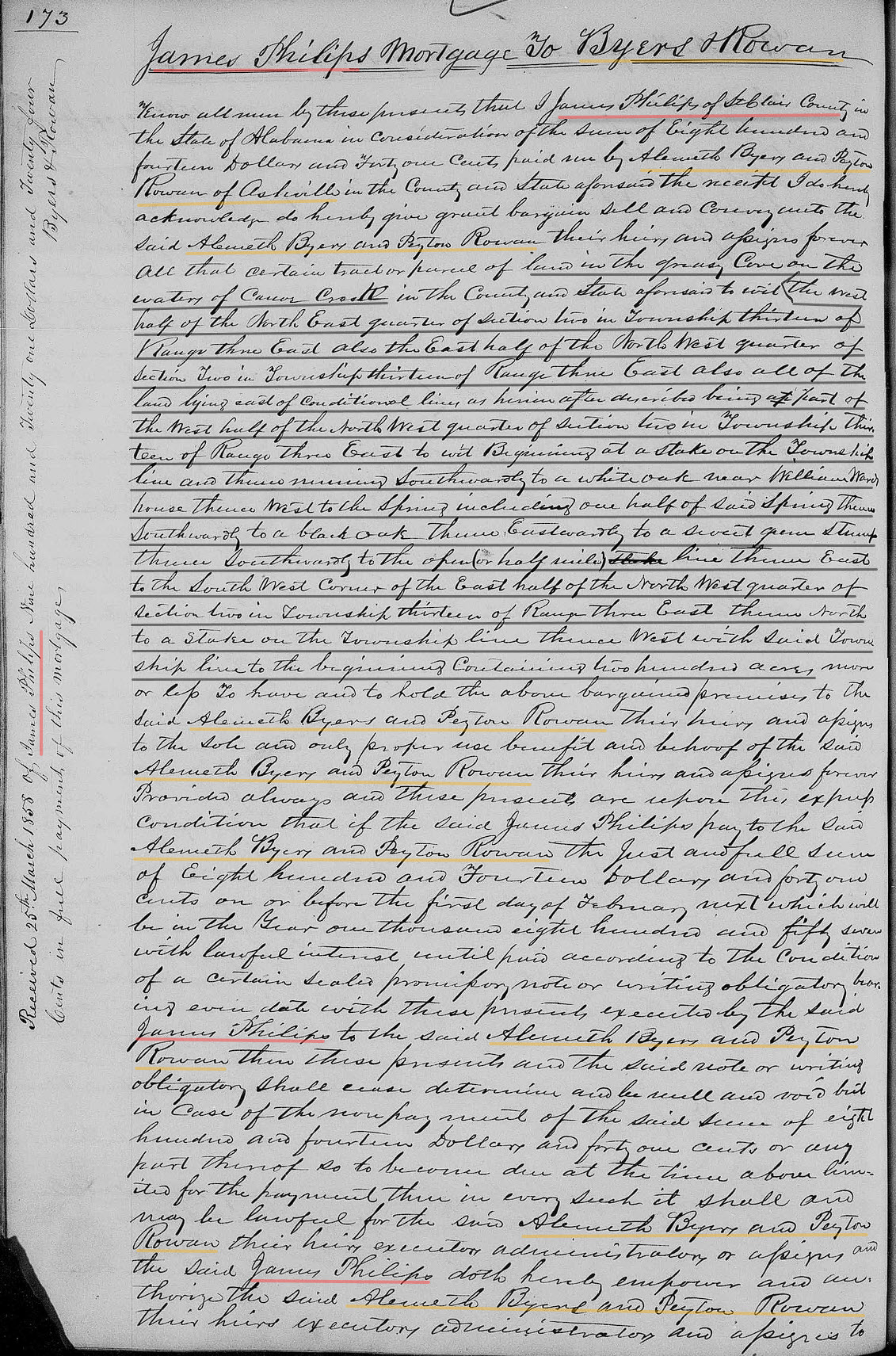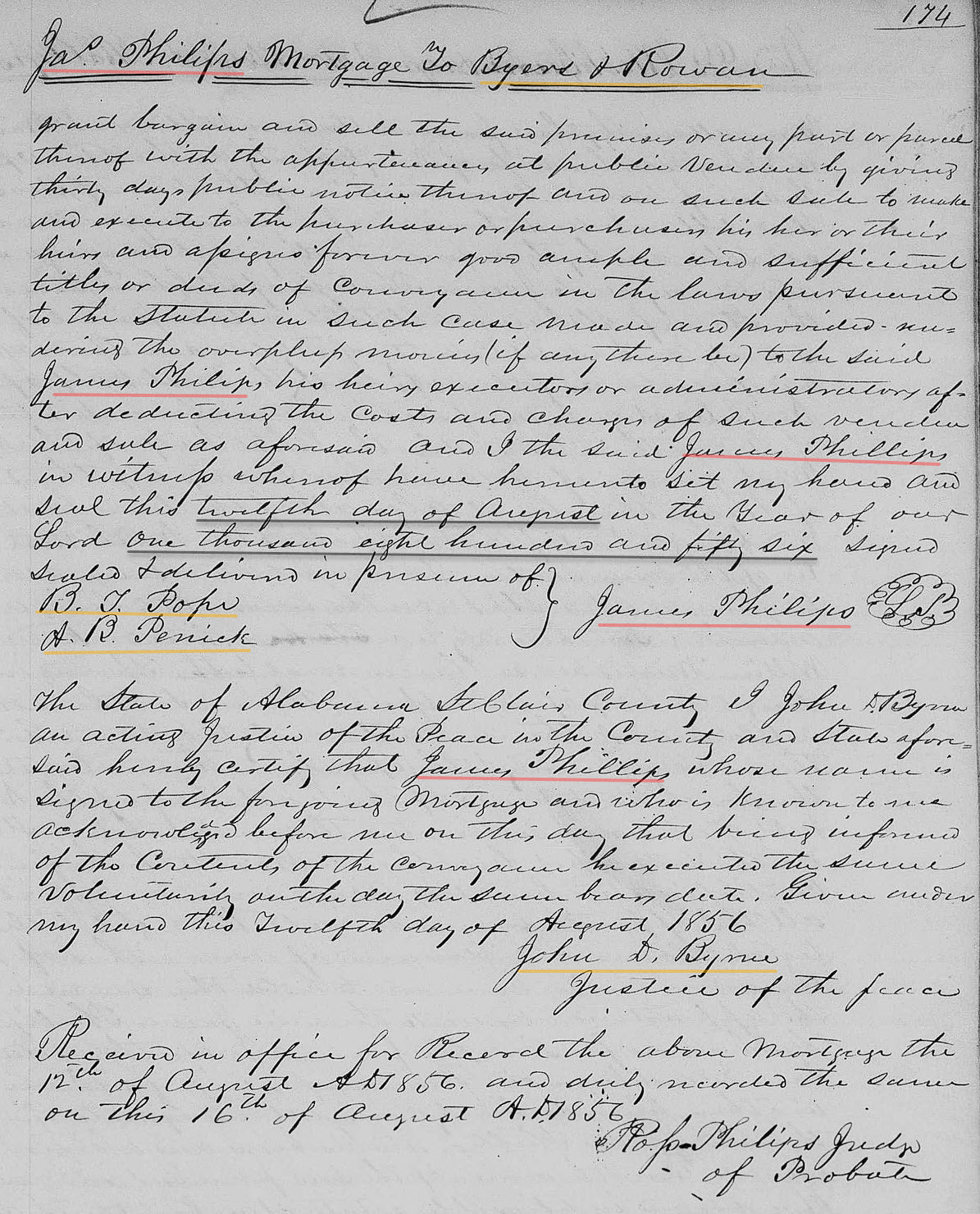 James must have decided it was time to own land, because he took out a mortgage with Byers and Rowan (known mortgagers in the area) for land previously owned by his father William. The mortgage was taken on 12 August 1856.