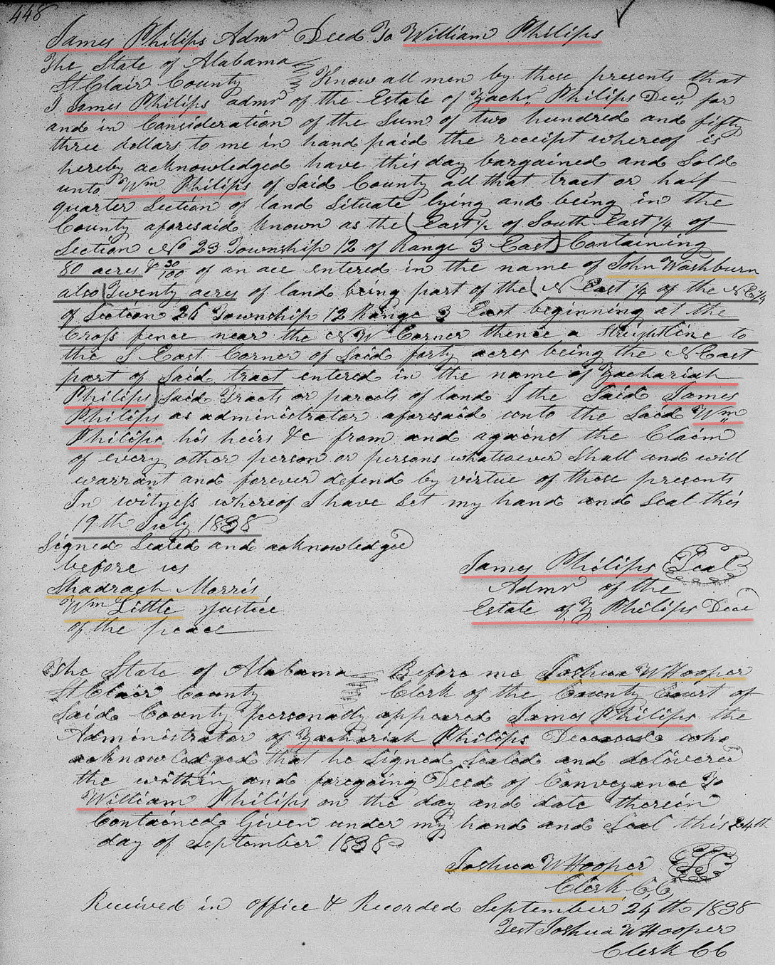 On 19 July 1838, James sells the remainder of Zach’s land to William Phillips.