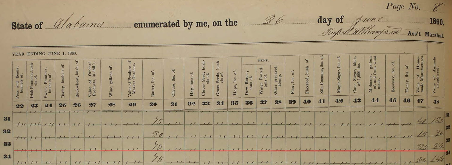 According to the Agricultural Census, he owned about 160 acres of land and it appears that he didn’t quite have as big a farm as his brother. He had about 200 bushes of Indian Corn and 25 pounds of Butter.