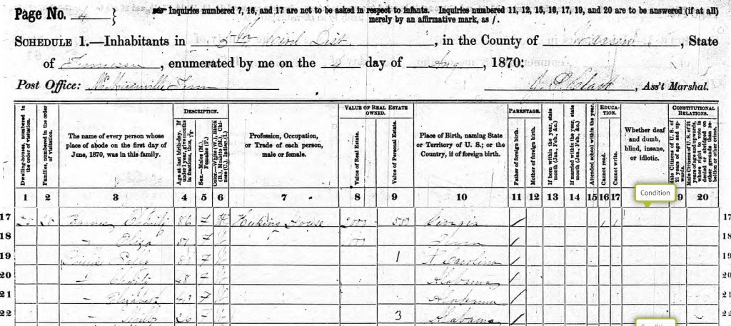 The Move to Tennessee – the 1870 US Census