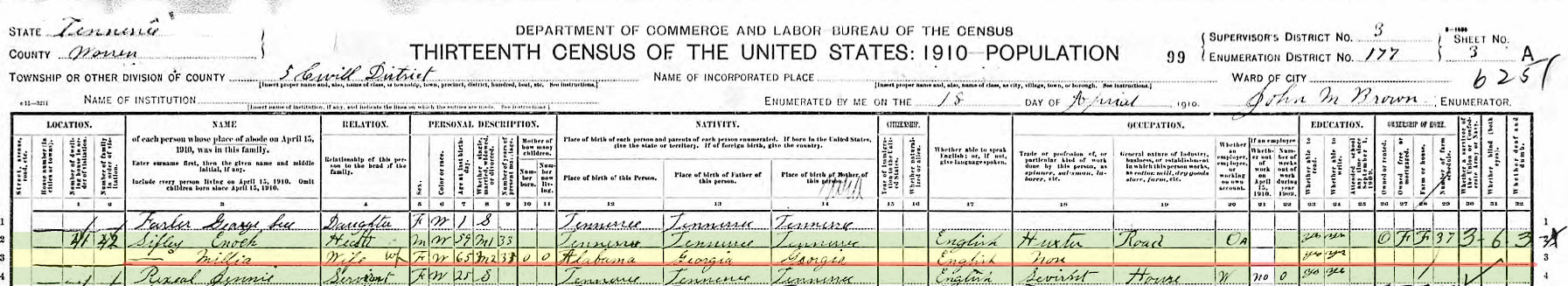 Warren County, Tennessee. US Federal Census 1910 Page Civil District 5, District 0177 Page 5